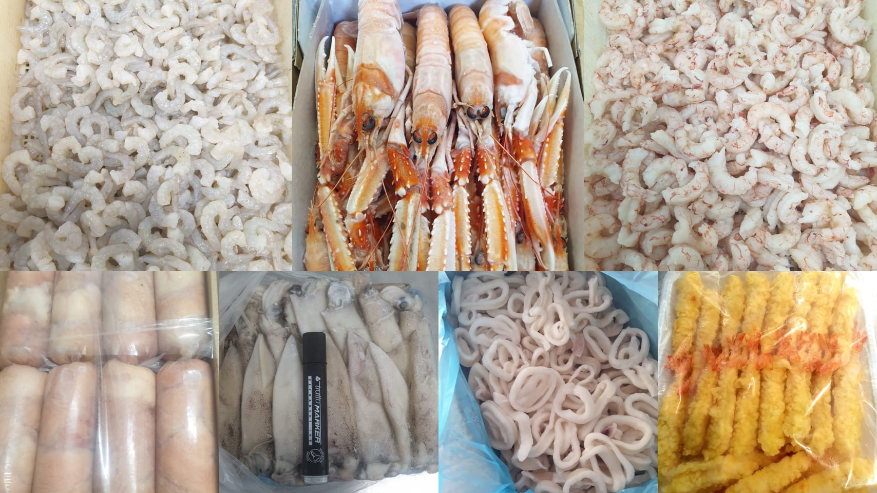 Filetti di merluzzo, granchi interi, spiedini panati di calamari e gamberi, spiedini di mazzancolla sgusciata, olive di pesce e di tonno, scampi. Ecco alcuni prodotti ideali per mille preparazioni!