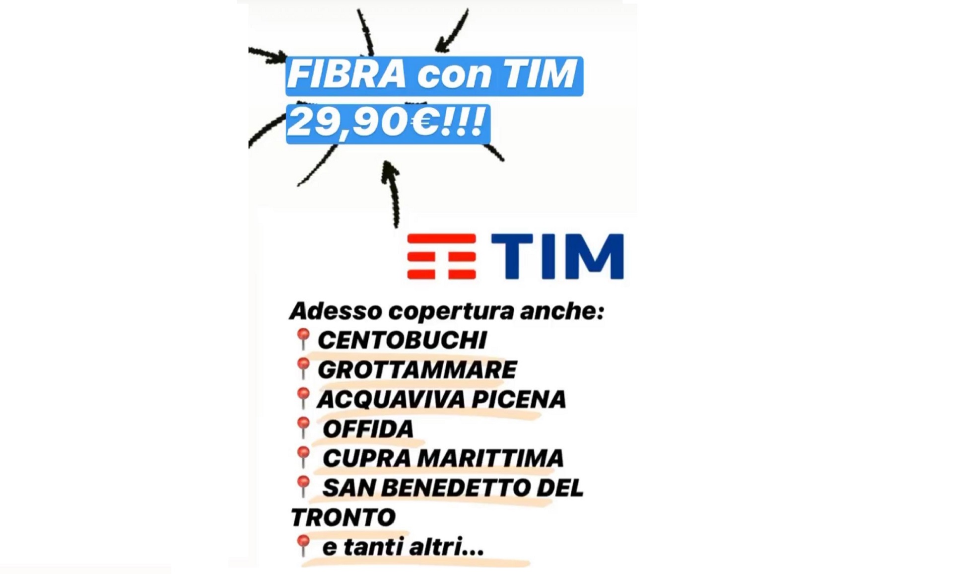 Adesso la fibra è attiva non più solo a San Benedetto ma in tanti altri comuni, come Castel di Lama, Centobuchi, Monteprandone, Grottammare, Acquaviva, Cupra, Monsampolo, Offida e Spinetoli.