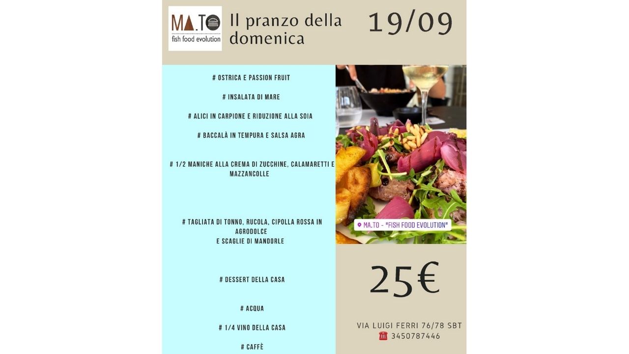 La domenica appuntamento fisso da Ma.To! Prenota ora e goditi il tuo pranzo al profumo di mare