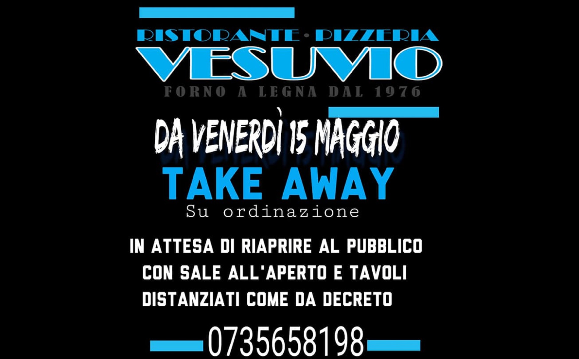Da venerdì 15 maggio, il Ristorante Pizzeria Vesuvio riapre con il servizio take away e consegna a domicilio!