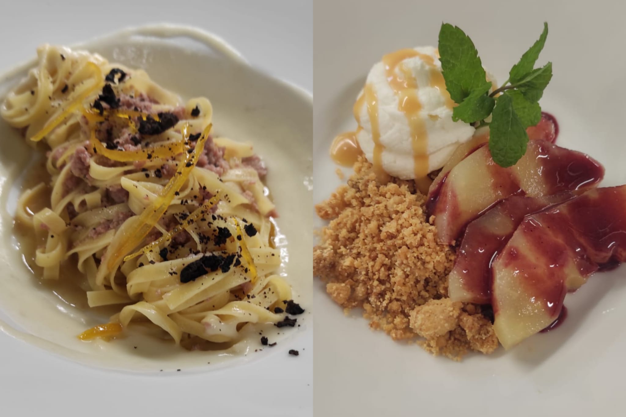 - tagliatelle al ragù di ciauscolo, finocchio al Varnelli, arancia candita e polvere di olive nere;