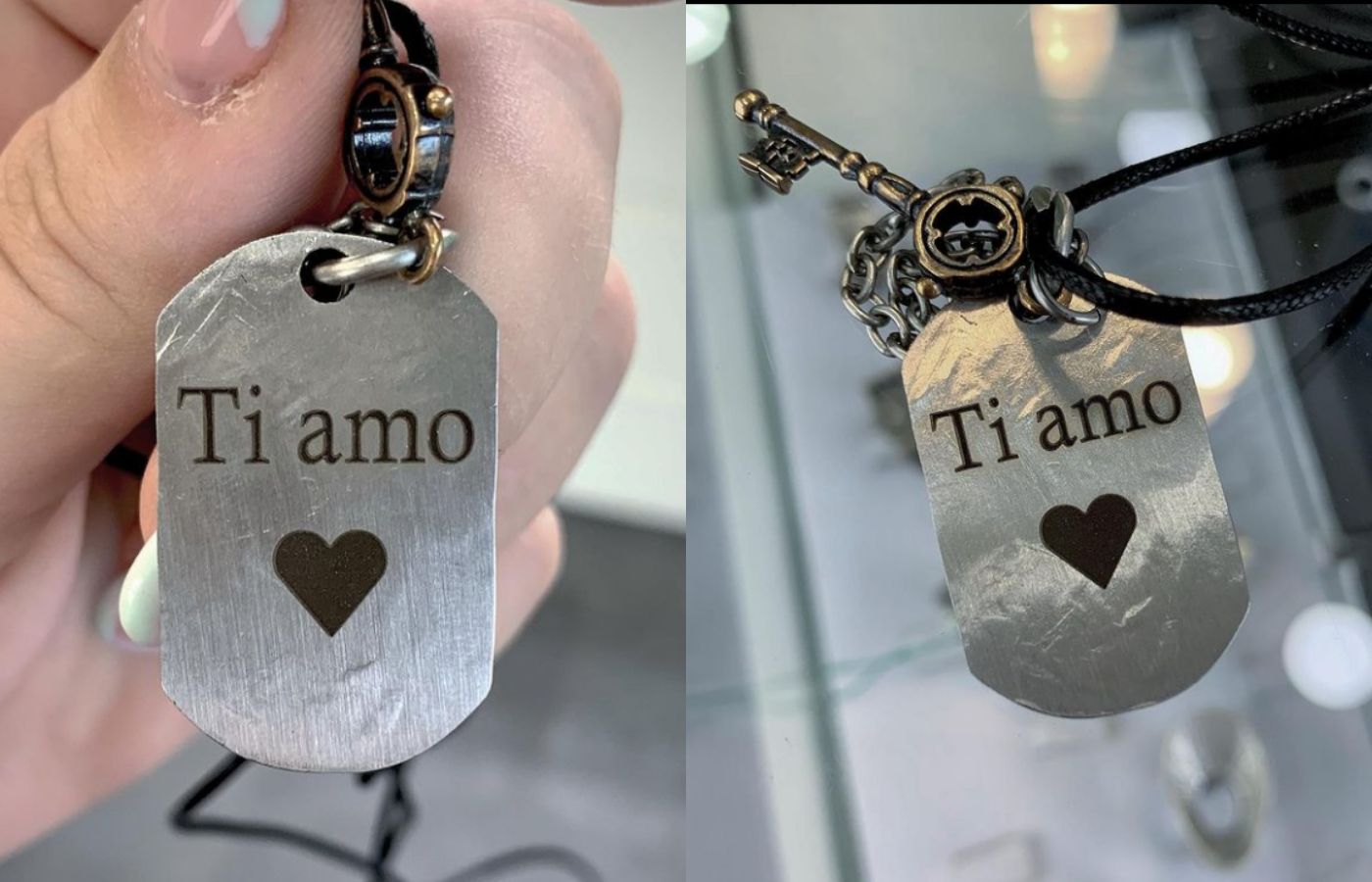 Ecco un’originale incisione laser su ciondolo in acciaio.