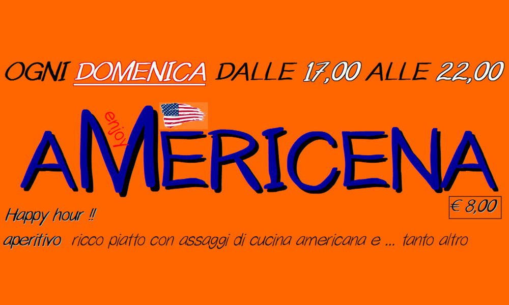 Domenica sera torna l’Americena, happy hour in stile americano dalle ore 17, prezzo 8 euro.