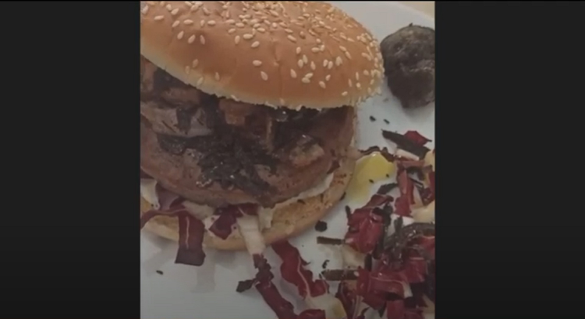 Ecco gli ingredienti del panino Fred: Hamburger, Stracciatella di Burrata, Guanciale croccante, Radicchio, Tartufo e Grana.