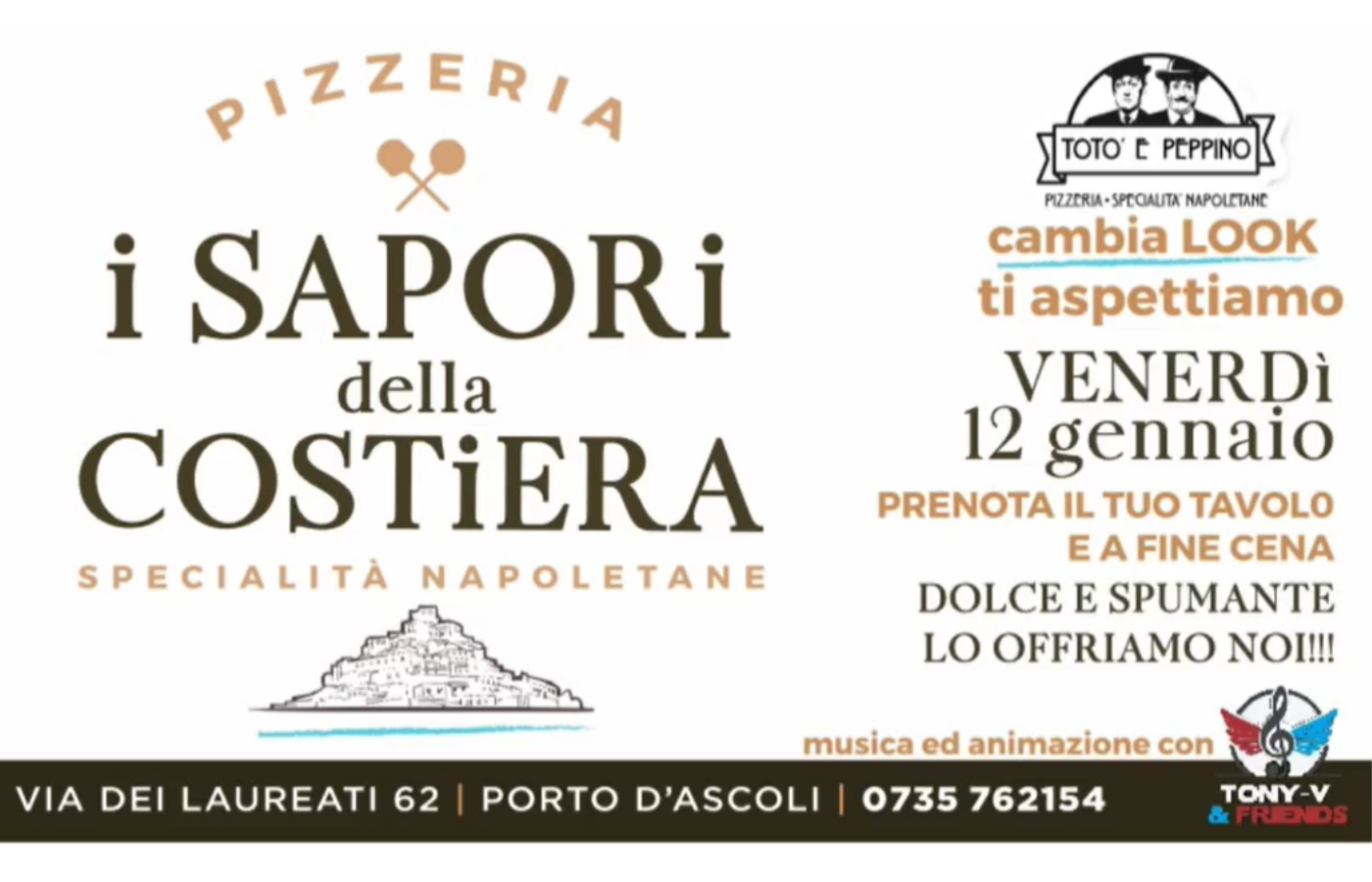 Il 12 gennaio grande serata con brindisi, dolce e animazione per presentare la nuova pizzeria che diventa “I Sapori della Costiera – Specialità Napoletane”.