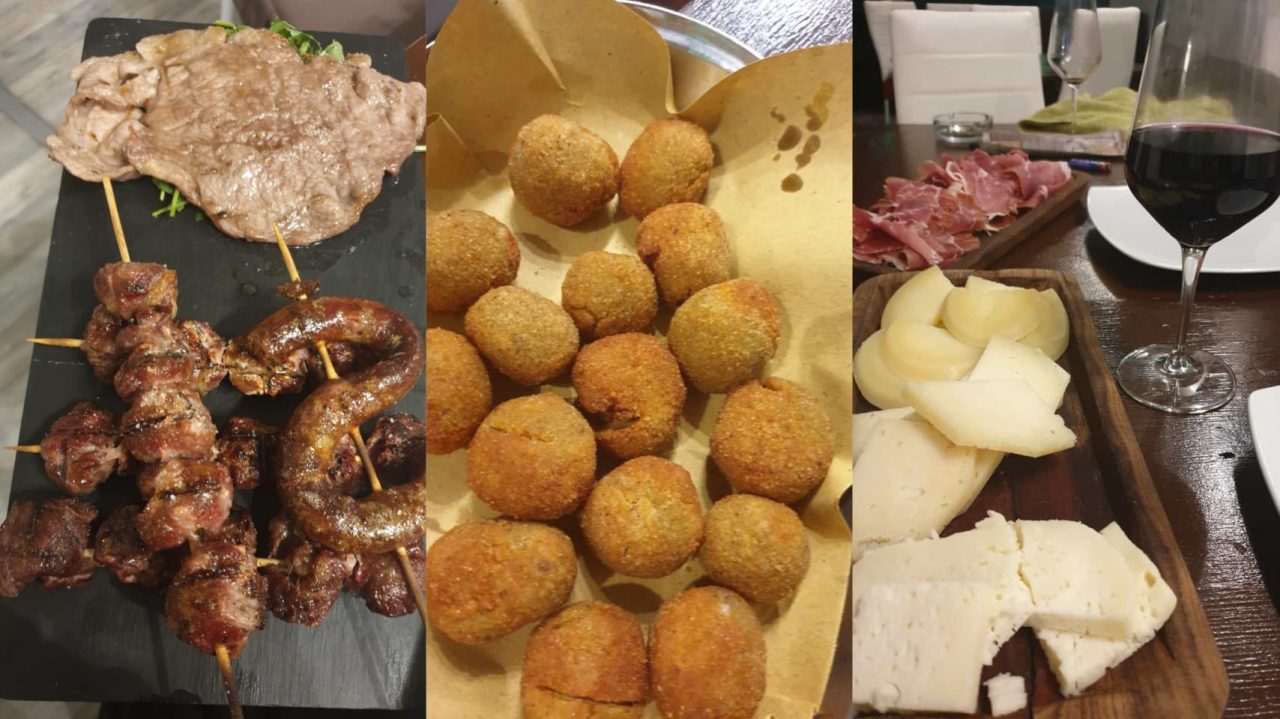 Antipasti: oliva fritta, prosciutto, fegatini balcanici pastellati