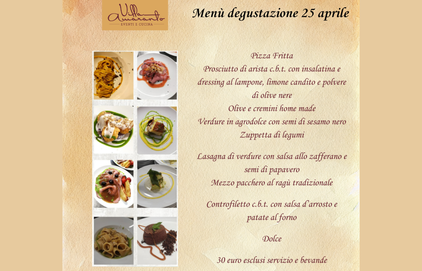 …è il menù degustazione del 25 aprile di Villa Amaranto.